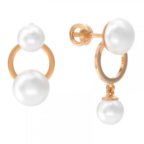 Стильные ассиметричные серьги - пусеты с жемчугом, выполнены из красного золота 585 пробы. Такое украшение идеально впишется в повседневный образ, подчеркнув вашу красоту и элегантность. Тип замка - винтовой, самый надежный и комфортный.