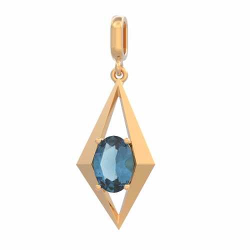 Объемная подвеска в стиле геометрия выполнена из красного золота 585 пробы украшена топазом темно-голубого цвета, красоту которого подчеркивает идеальное отполированное золото