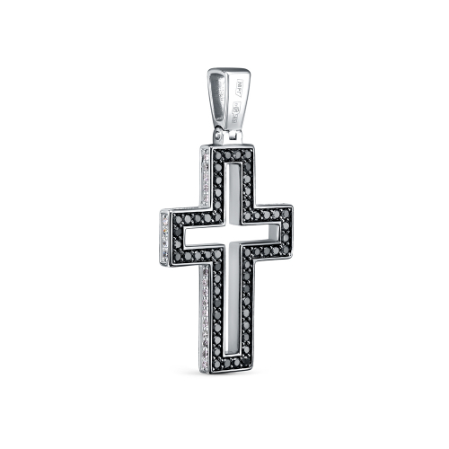 Подвеска в виде креста из белого золота представляет собой уникальное и необычное украшение. С одной стороны креста расположены черные бриллианты, создающие драматичный и таинственный эффект, а с другой — белые бриллианты, символизирующие чистоту и свет. Такой дизайн делает подвеску двусторонней, позволяя менять внешний вид. Это изделие идеально подойдет для тех, кто ценит эксклюзивность и стремится выразить свою индивидуальность через аксессуары. Представлено брендом ROSE GRACE. Вставки: 56 Бр черн. обл. Кр 57 1,15-1,20 120-200 7/6А - 0,448 ct.; 56 Бр Кр 17 1,15-1,20 120-200 2/3А - 0,392 ct.; 54 Бр Кр 17 0,95-1,00 200-400 2/3А - 0,216 ct. В комплект поставки входит: