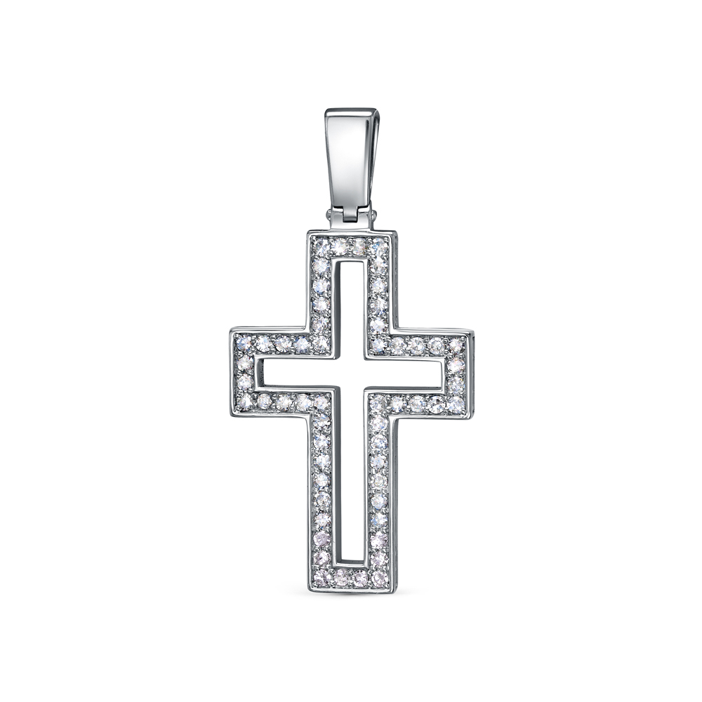 Подвеска в виде креста из белого золота представляет собой уникальное и необычное украшение