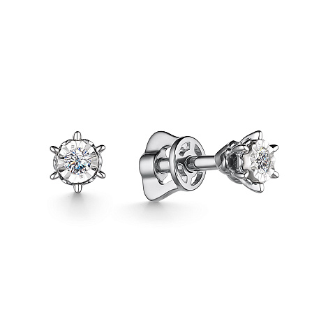 Серьги - пуссеты, украшенные сверкающими бриллиантами в оригинальном касте, выполнены из белого залота 585 пробы. Белое золото визуально увеличивает объём бриллиантов и подчеркивает их блеск и природную красоту. Тип замка - винтовой, самый надежный и комфортный. Средняя характеристика камней на артикул: 2 Бриллиант Круг 57 0.06 3/6. На каждое украшение имеется сертификат о подлинности камней от производителя. В комплект поставки входит: