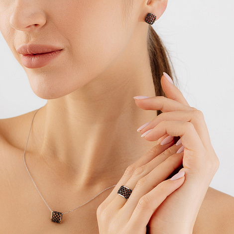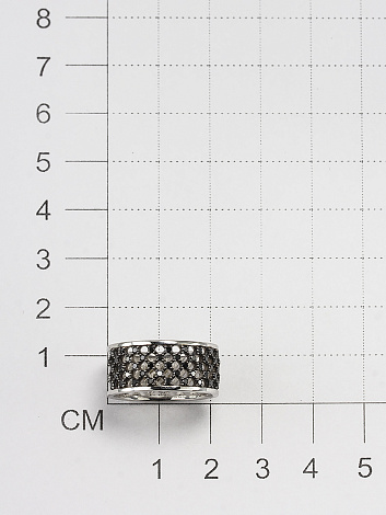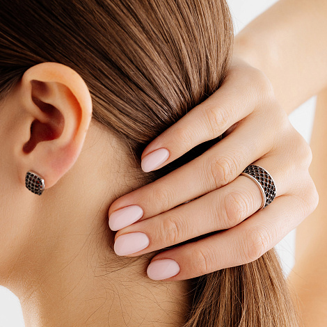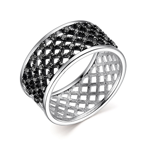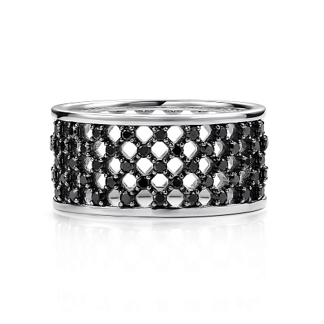 Стильное ажурное кольцо из белого золота 585 пробы украшено россыпью чёрных сверкающих бриллиантов