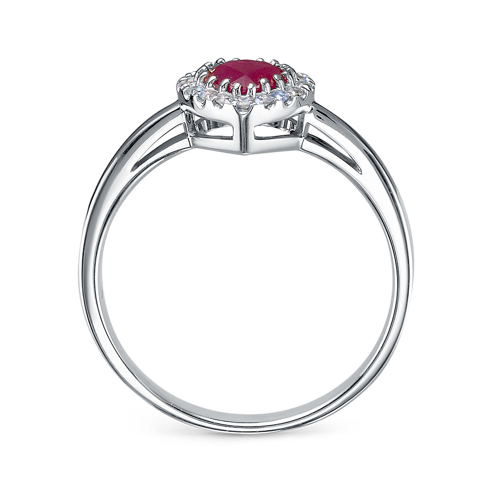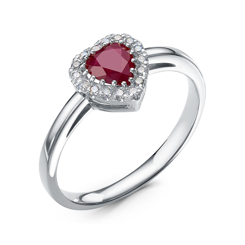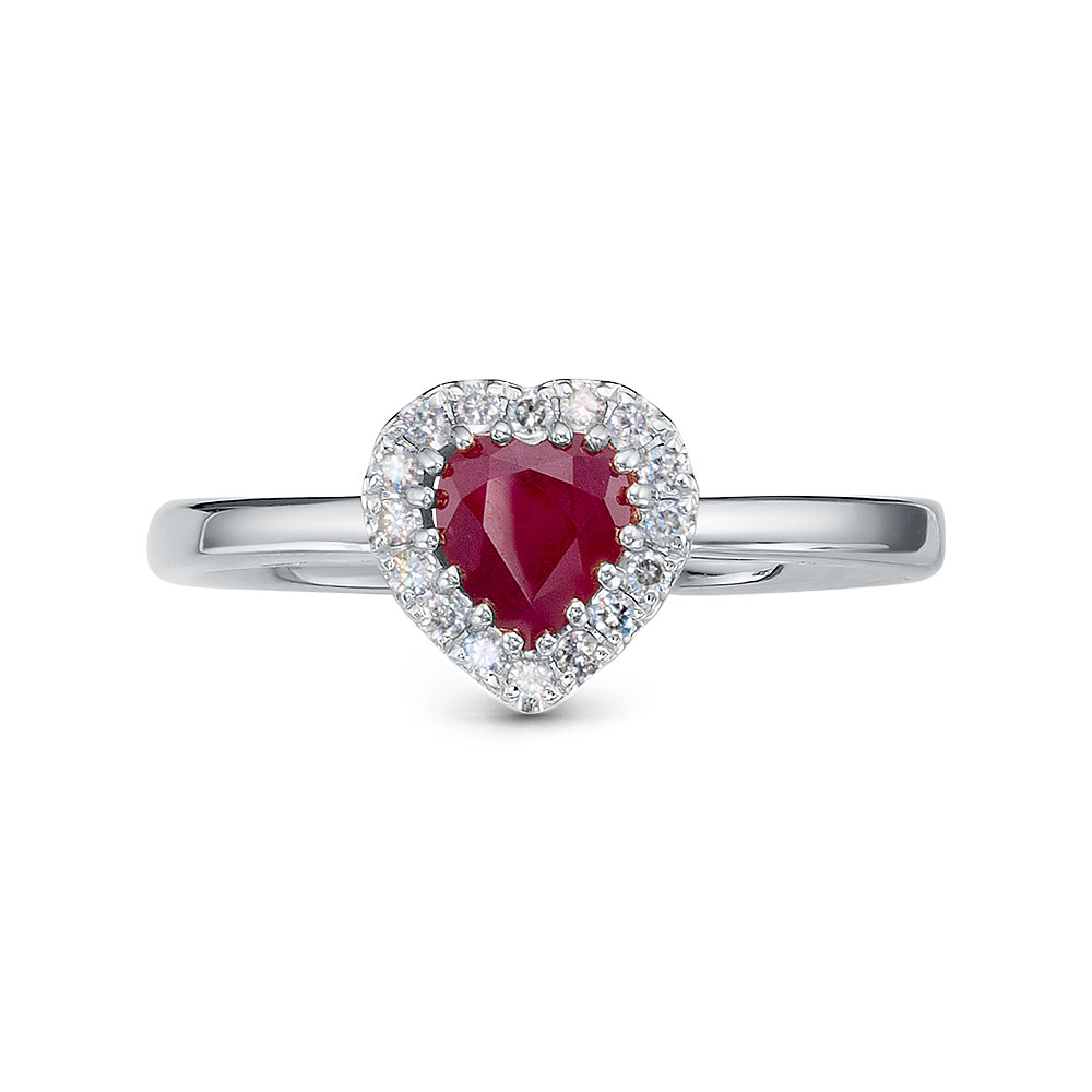 Кольцо из белого золота, украшенное блестящими бриллиантами и рубином в форме сердца, станет воплощением вашей любви и страсти