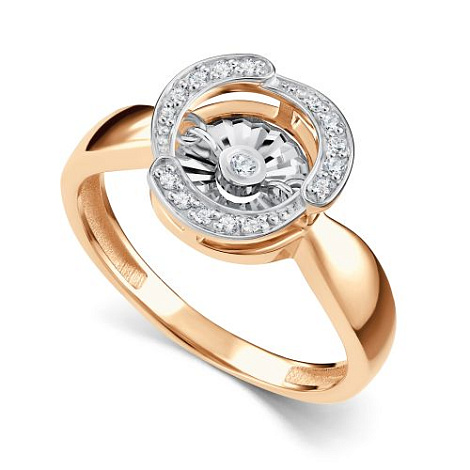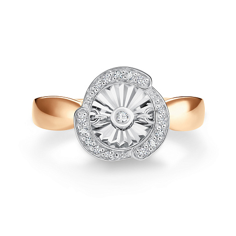 Эффектное кольцо выполнено с сочетанием красного и белого золота 585 пробы, украшенное сияющими бриллиантами