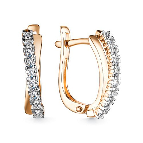 Элегантные серьги, выполнены в сочетании красного и белого золота 585 пробы, украшены сияющими бриллиантами. Такое украшение идеально дополнит любой Ваш образ. Тип замка - английский, самый надежный и удобный. Изделие представлено брендом АЛЬКОР. Средние характеристики вставки: 18 Бриллиант Круг 57 0.418 4/5 В комплект поставки входит: