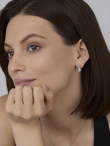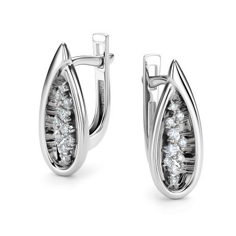 Роскошные серьги, выполнены из белого золота 585 пробы, украшены сияющими бриллиантами. Закрепка бриллиантов в белом золоте, придает камням объем и подчеркивает их природную красоту и игру света. Тип замка - английский, самый надежный и удобный. Изделие представлено брендом АЛЬКОР. Средняя характеристика камней на артикул: 3 Бриллиант Круг 57 0.014 4/5, 5 Бриллиант Круг 57 0.036 4/5, 2 Бриллиант Круг 57 0.027 4/5 В комплект поставки входит: