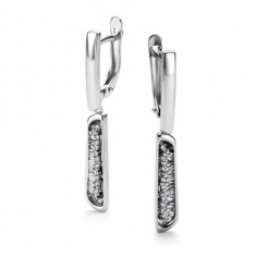 Стильные удлинённые серьги с подвесной частью, украшенной россыпью бриллиантов, выполнены из белого золота 585 пробы