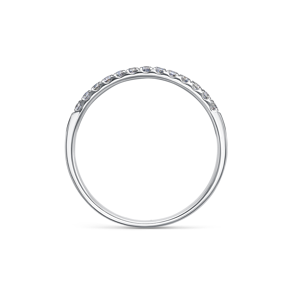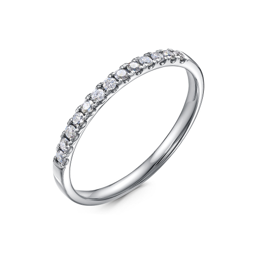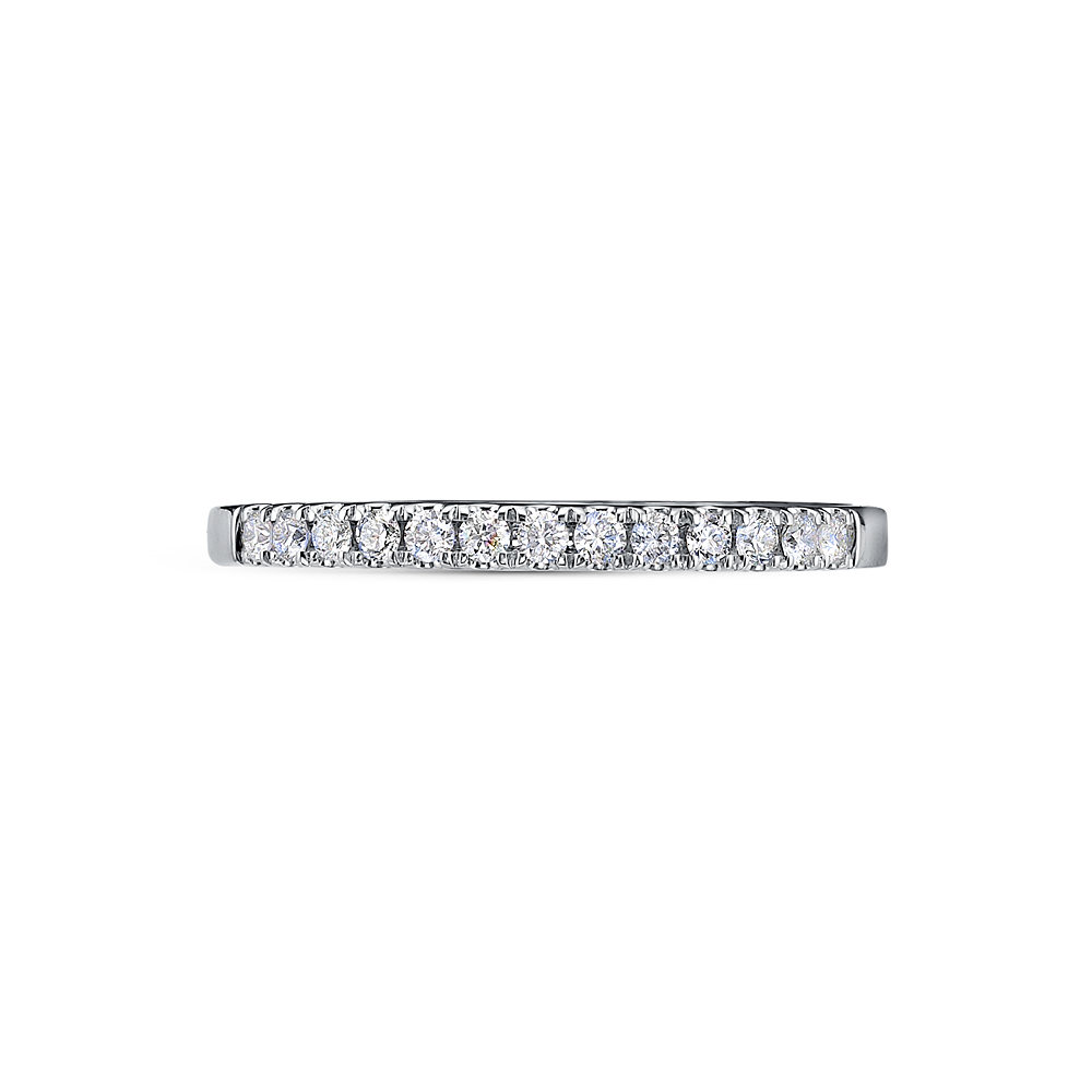 Кольцо, украшенное дорожкой сверкающих бриллиантов, выполнено из белого золота 585 пробы