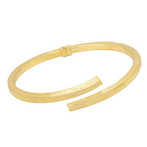 Незамкнутый сатиновый серебряный браслет с золотым покрытием — это стильный аксессуар с современным дизайном, идеально подходящий для создания выразительных образов