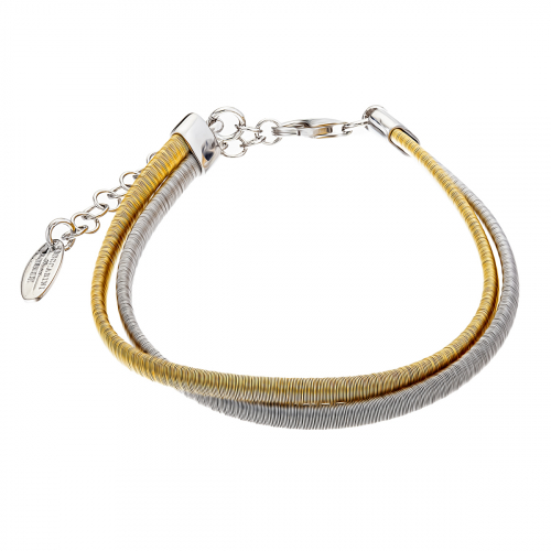 Серебряный браслет с двумя линиями, одна из которых имеет золотое покрытие, создаёт лаконичный и изысканный дизайн, подчеркивающий вашу индивидуальность