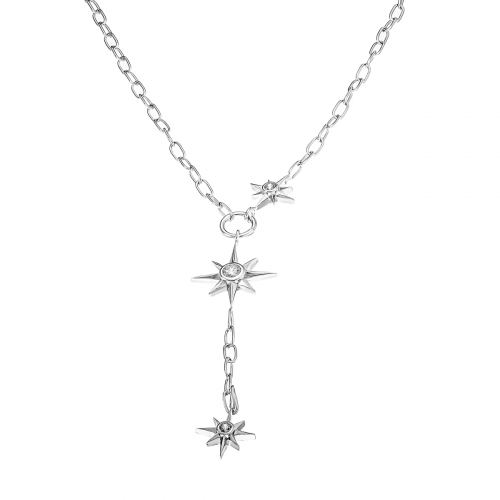 Цепочное серебряное колье, украшенное звёздами с цирконием, — это волшебное и романтичное украшение