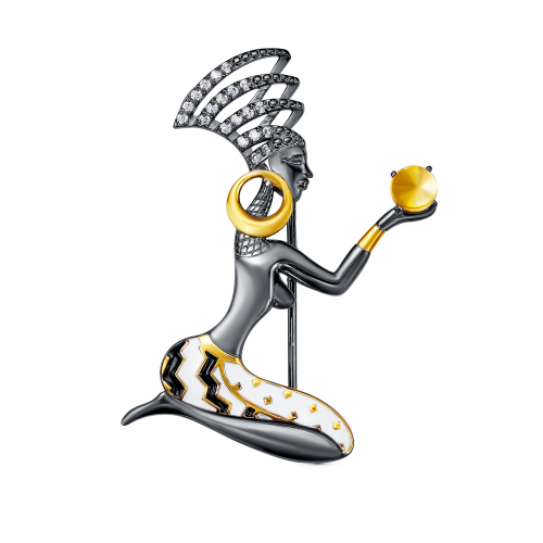 Брошь в египетском стиле с цитрином и фианитами — это величественное украшение, вдохновленное древней культурой фараонов
