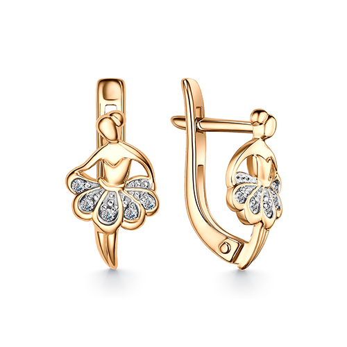 Нежные детские серьги выполнены из красного золота 585 пробы, украшены сияющими фтанитами