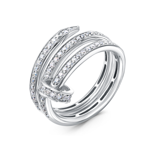 Стильное широкое кольцо, в виде загнутого в круг гвоздя, выполнено из белого золота 585 пробы, украшено великолепными сияющими фианитами
