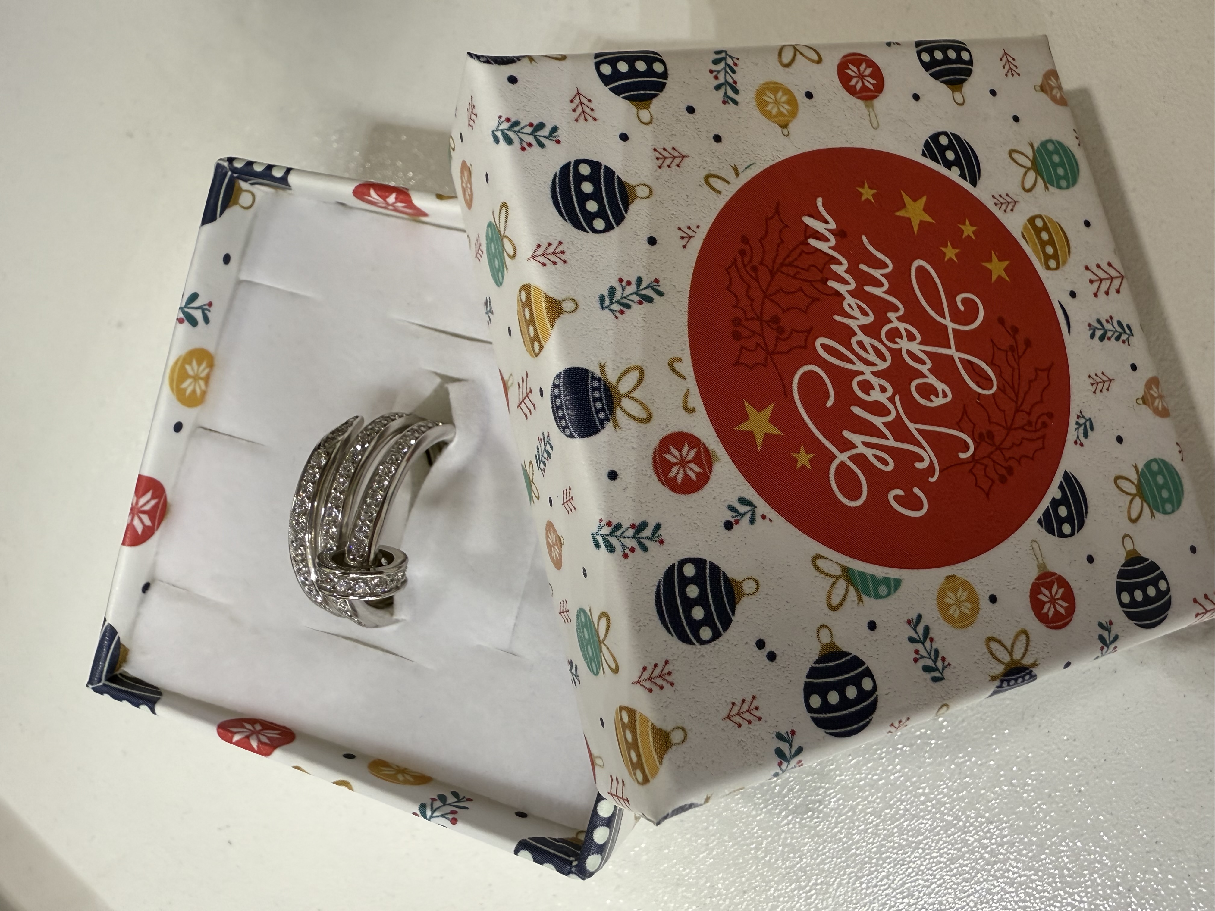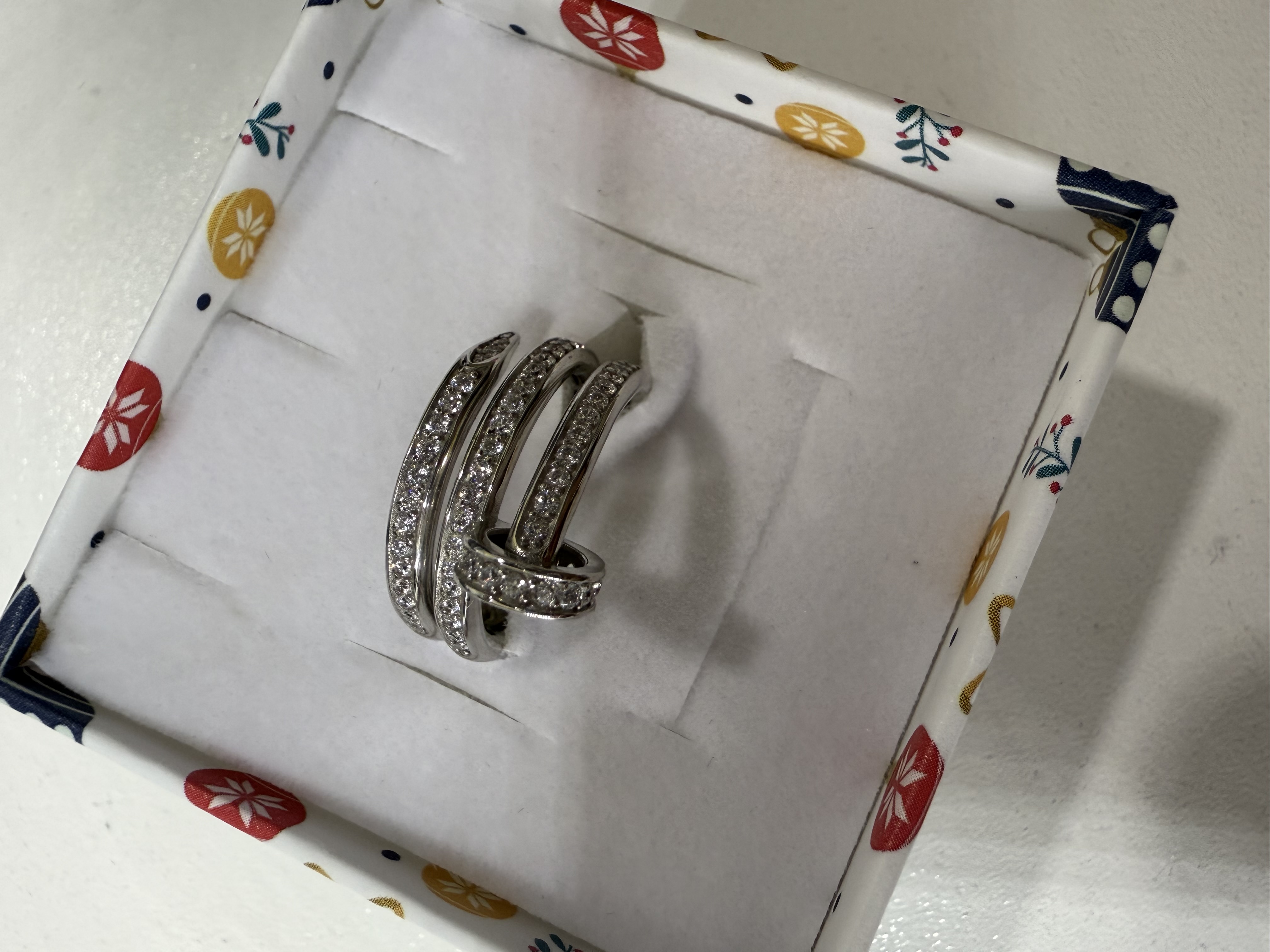 Приближается Новый Год и я уже начинаю получать удовольствие от предстоящего праздника, так как подарочек уже получила. Кольцо из белого золота в современном стиле, яркое, необычное и модное. Красота!
