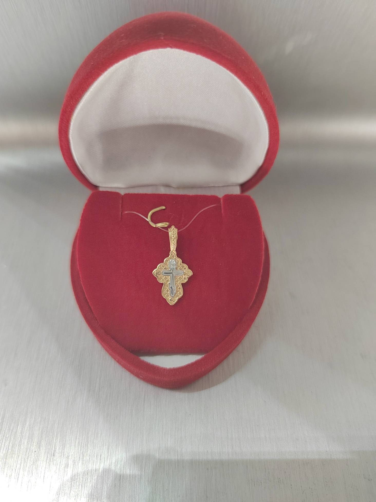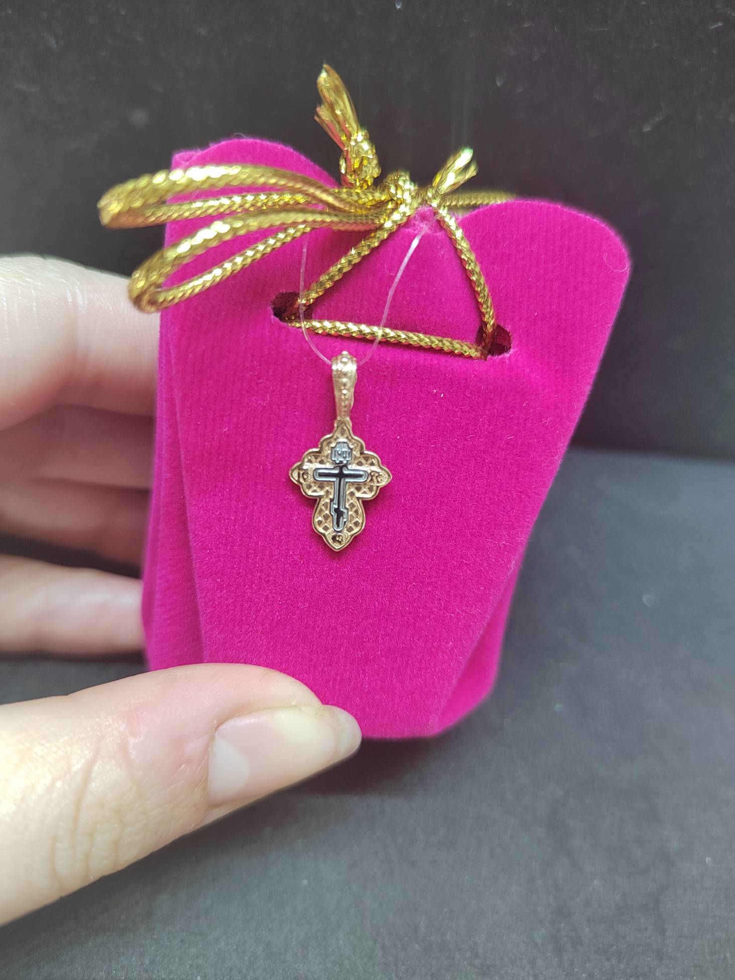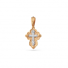 Подвеска- крест, в котором исполнены все каноны православной церкви, выполнена в сочетании красного и белого золота 585 пробы