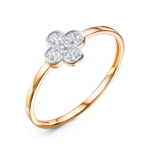 Стильное кольцо оригинального дизайна, виде цветка, из коллекции Extralight, выполнено из красного и белого золота 585 пробы, украшено сияющими фианитами