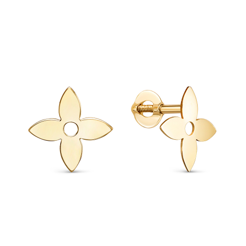 Серьги - пусеты выполнены в оригинальном дизайне в виде цветка из желтого золота 585 пробы