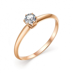 Элегантное классическое помолвочное кольцо с роскошным бриллиантом выполнено в красном золоте 585 пробы