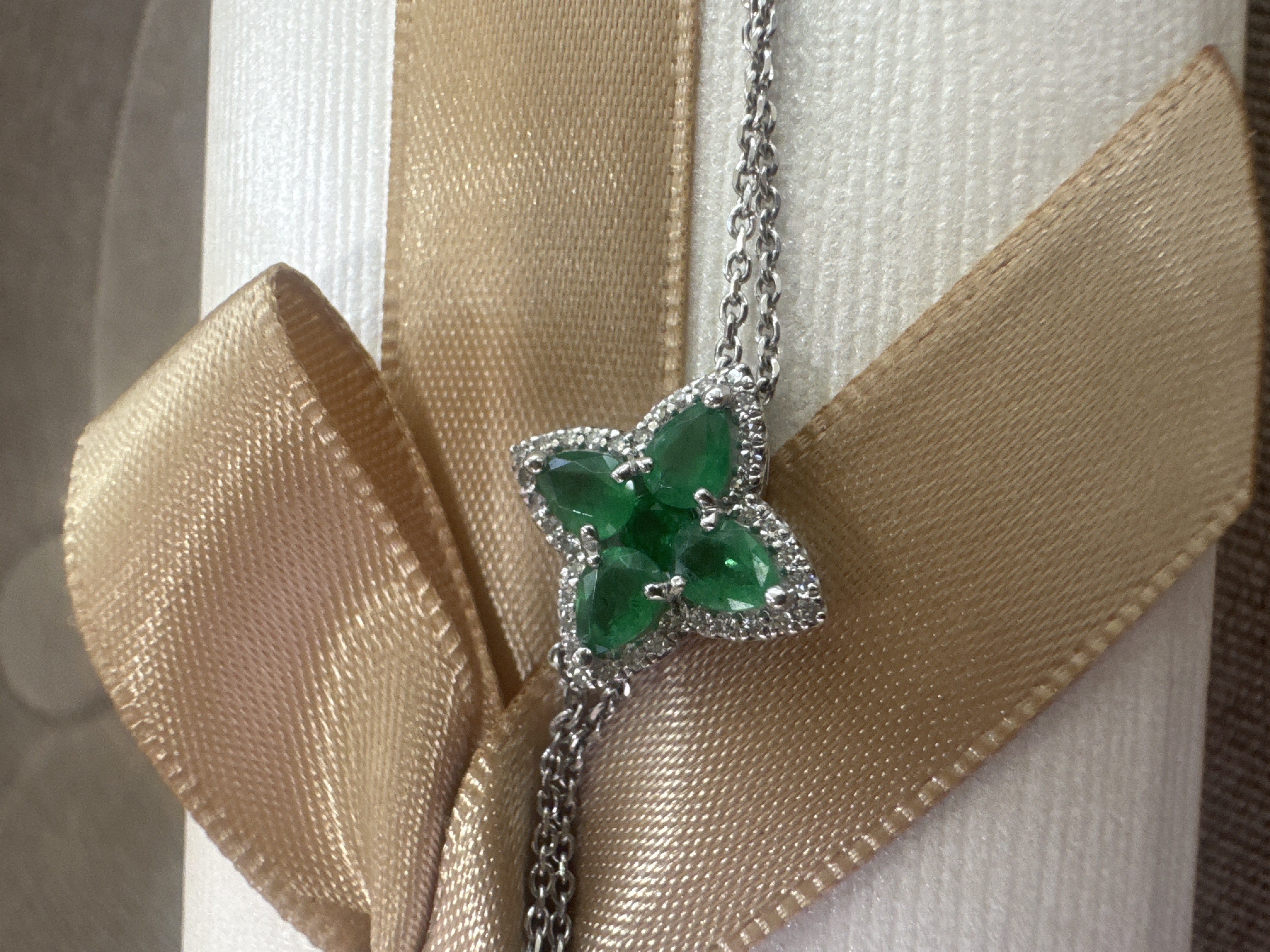 Я в восторге от этого браслета! Якорное плетение придаёт ему изысканный и элегантный вид. Вставка из изумрудов в форме клевера — это не только красиво, но и символично. Золото высокого качества, браслет приятно носить. Отличный выбор для тех, кто ценит элегантность и драгоценности. Буду носить с удовольствием!