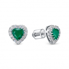 Яркие серьги - пусеты с натуральными изумрудами в инкрустации сияющих бриллиантов выполнены из белого золота 585 пробы. Ювелирная классика - изумруд с бриллиантами. Эти серьги отличаются хоть и простым, но изысканным и красивым дизайном. Тип замка - винтовой, самый надежный и комфортный. Изделие представлено брендом "ROSE GRACE". Средняя характеристика камней: 2 Изумруд нат. Сердце 5х5 3/3 - 0,8 ct.; 32 Бр Кр 57 1,1 400-200 4/6А - 0,224 ct. В комплект поставки входит:
