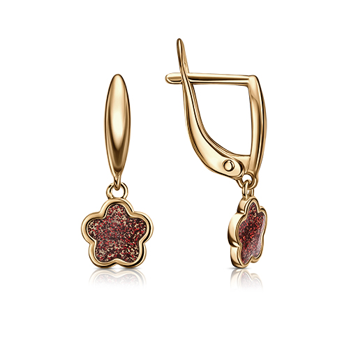 Серьги с изящными подвесками в форме цветов, украшенных эмалью, выполнены из красного золота 585 пробы. Такие серьги прекрасно подойдут для любого праздника или повседневной носки. Они станут отличным подарком для маленькой принцессы или просто для того, чтобы порадовать своего ребенка. Тип замка - английский, самый надежный и удобный. Изделие представлено брендом "VERONIKA". В комплект поставки входит: