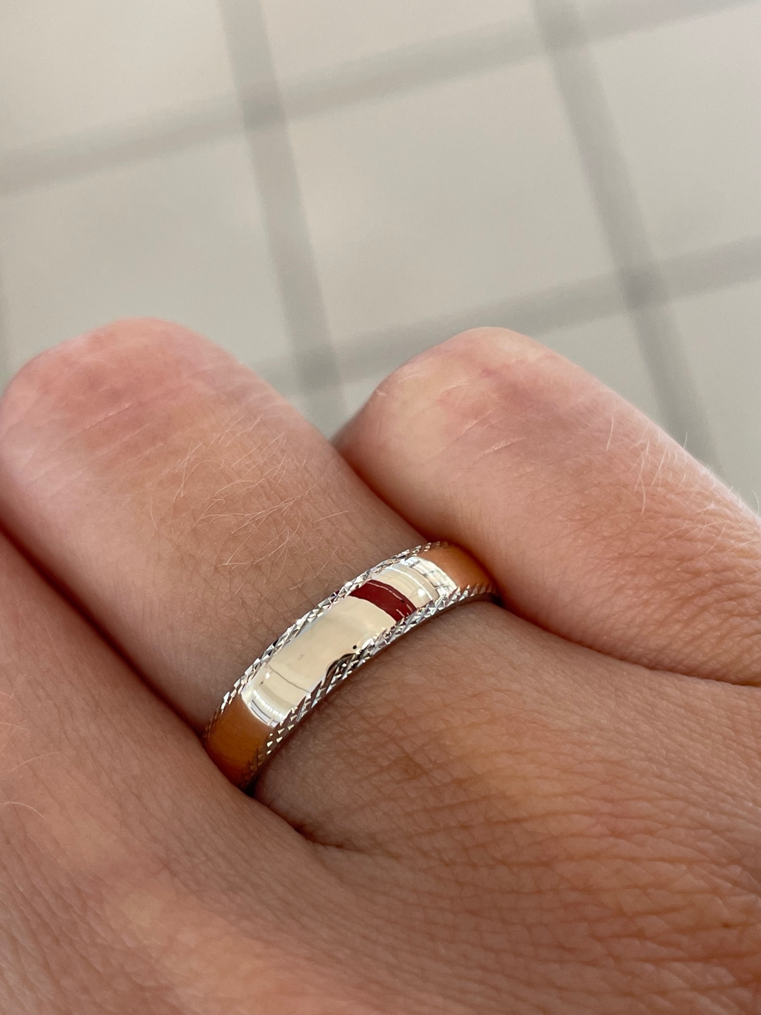 Алмазная грань- это особый вид обработки золота, при котором поверхность смотрится очень ярко, она искрится и играет и имитирует камни, отличается такой вид обработки особой практичностью и блеском. В кольце используется яалмазная грань по обоим краям кольца.