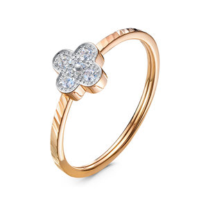 Стильное кольцо оригинального дизайна из коллекции Extralight, выполнено из красного и белого золота 585 пробы, украшено сияющими фианитами