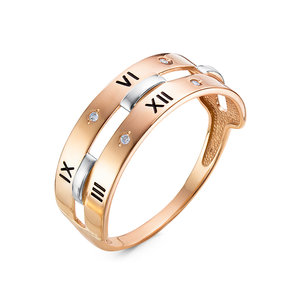 Стильное кольцо оригинального дизайна, с изображением римских цифр, из коллекции Time of Tiffany, выполнено из красного и белого золота 585 пробы, украшено сияющими фианитами. Переливы двух оттенков золота в сочетании с фианитами, привлекают внимание с первого вгляда. Огранка камней максимально раскрывает их красоту, а оправа позволяет лучам света играть на их поверхности, делая их ещё более искристыми. Такое украшение станет модной изюминкой в повседневном или деловом образе.Изделие представлено брендом DEL`TA. В комплект поставки входит: