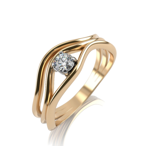 Основа кольца выполнена в желтом золоте, а каст, в котором крепится фианит - в белом. Закрепка камня в белом золоте визуально увеличивает его объем и подчеркивает блеск и красоту.