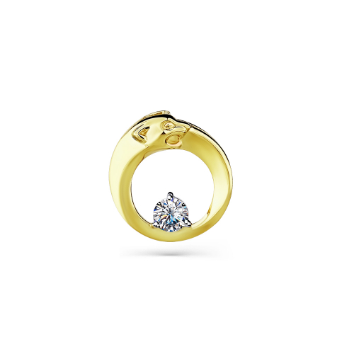 Подвеска выполнена из жёлтого золота 585 пробы, украшена искрящимся фианитом. Блеск металла и оправа камня позволяет лучам света играть на их поверхности, притягивая взгляды. Представлено брендом "CARLIN".