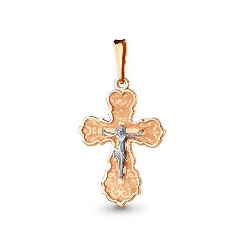 Православный крест выполнен в сочетании красного и белого золота 585 пробы