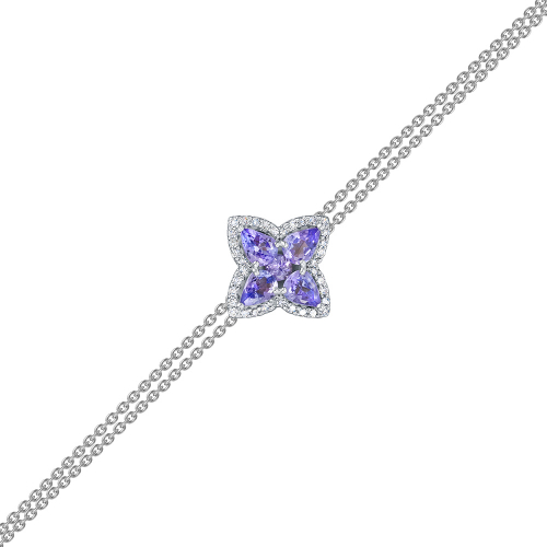 Стильный браслет из белого золота 585 пробы, украшенный нежными танзанитами и сверкающими бриллиантами, — это идеальное сочетание элегантности и роскоши