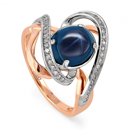 Кольцо выполнено с сочетанием красного и белого золота 585 пробы, украшено роскошным звёздным сапфиром в окружении сверкающих бриллиантов