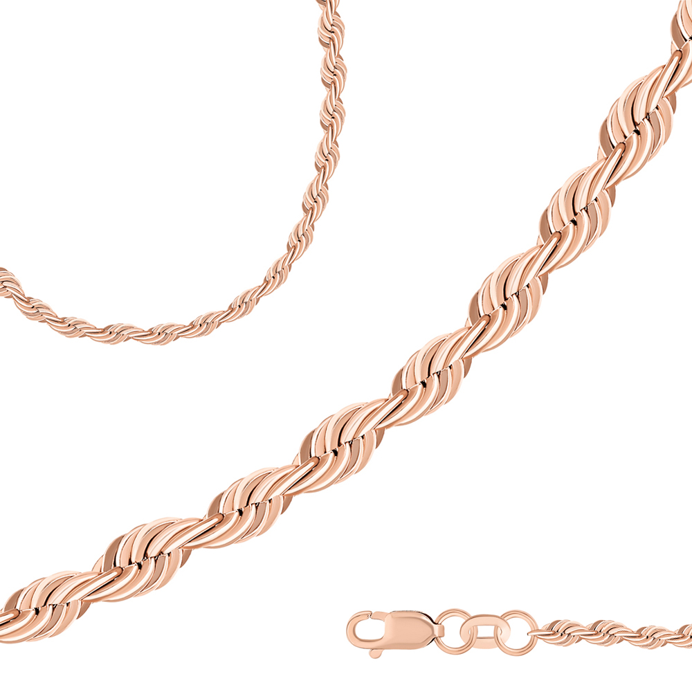 Цепь из тёплого красного золота 585 пробы с оригинальным плетением «Корда» (верёвка) и утончённой отделкой алмазной гранью