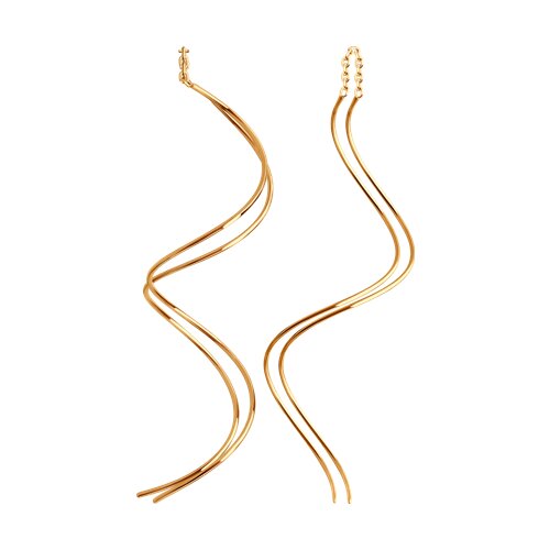 Стильные серьги-протяжки изготовлены из высококачественного красного золота 585-й пробы. Уникальный закрученный дизайн придает украшению динамику и оригинальность, выделяя его среди традиционных моделей. Изделие представлено брендом SOKOLOV. В комплект поставки входит: