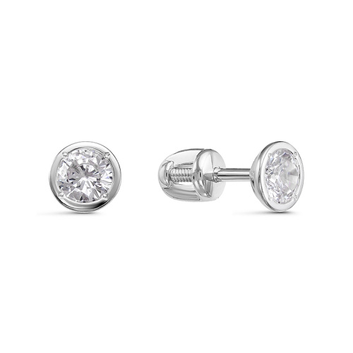 Элегантные серьги-пусеты в классическом стиле выполнены из белого золота 585 пробы, украшенные сияющими фианитами