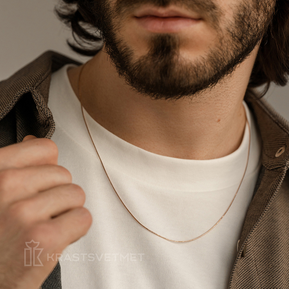 Полновесная цепь из красного золота 585 пробы с изысканным плетением «Снейк» и блестящей отделкой алмазной гранью. Компактное плетение в виде гладкого и ровного шнурка выглядит стильно и современно, при этом обеспечивается максимальная прочность и долговечность изделия. Особый метод обработки каждого звена придает цепи эффект яркого и многогранного блеска, привлекая внимание и подчеркивая утонченность владельца. Такое украшение прекрасно подойдет как самостоятельный аксессуар, так и в сочетании с подвеской или кулоном. Диаметр проволки 0,25 мм. Представлено брендом КРАСЦВЕТМЕТ. В комплект поставки входит: