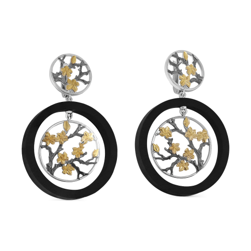 Роскошные удлинённые серьги с нежным ажурным дизайном в флористическом стиле, выполнены из родированного серебра 925 пробы, частично украшены позолотой. Украшение покрыто родием, драгоценным металлом платиновой группы, который делает серебро устойчивым к повреждениям и сохраняет искрящийся блеск.Тип замка - английский, самый надежный и удобный. Изделие представлено брендом KABAROVSKY. Вставки: 2 Дерево Граб; В комплект поставки входит: