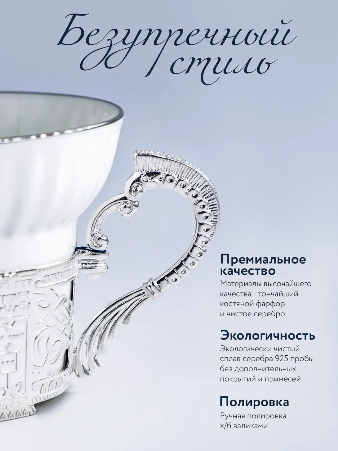 Эксклюзивная коллекция Фабрики серебра «АргентА», созданная совместно с Императорским фарфоровым заводом. В основу дизайна коллекции легла красота природы, которая в сочетании с многовековыми традициями русских мастеров В комплект поставки входит: