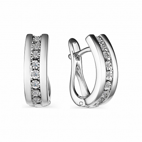 Роскошные серьги, выполнены из белого золота 585 пробы, украшены искрящейся россыпью бриллиантов.