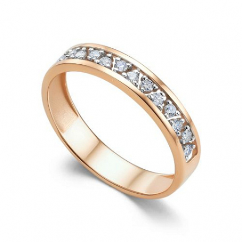 Элегантное кольцо, украшенное дорожкой сверкающих бриллиантов, выполнено из красного золота 585 пробы
