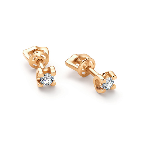Серьги-пусеты с сверкающими бриллиантами, выполнены из красного золота 585 пробы. Изящная закрепка пропускает свет со всех сторон, тем самым раскрывая глубокий цвет, игру и блеск камня. Тип замка - винтовой, надежный и удобный. Изделие представлено брендом Алькор.