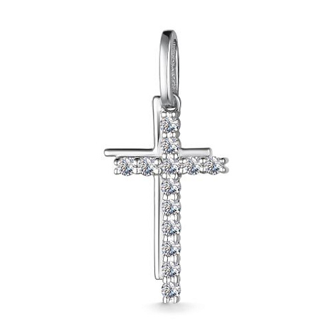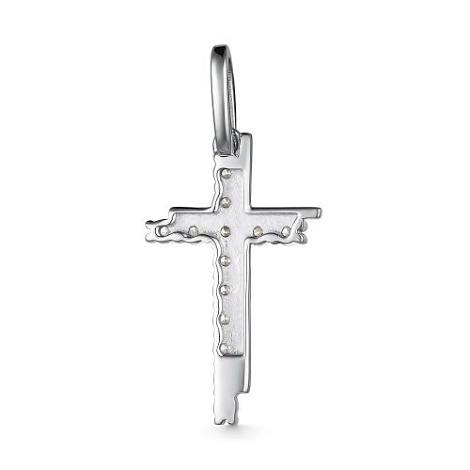 Декоративный крест, украшенный сверкающими бриллиантами полной огранки в 57 граней, выполнен из белого золота 585 пробы