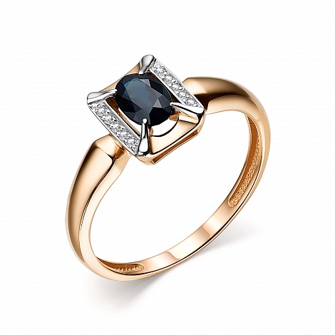 Роскошное кольцо, выполнено в сочетании красного и белого золота 585 пробы, с сапфиром тёмно-синего цвета и искрящейся россыпью бриллиантов.