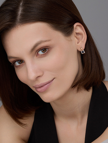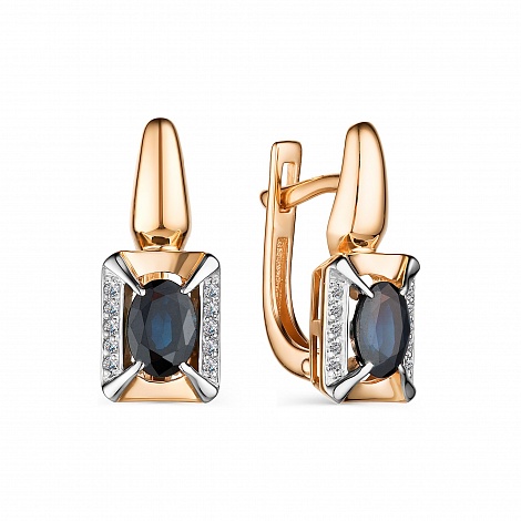 Роскошные серьги, выполнены в сочетании красного и белого золота 585 пробы, с сапфирами тёмно-синего цвета и сверкающей россыпью бриллиантов.