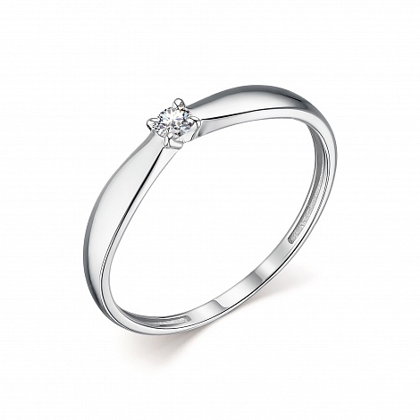 Нежное кольцо для помолвки, выполнено из белого золота 585 пробы украшено сверкающим бриллиантом