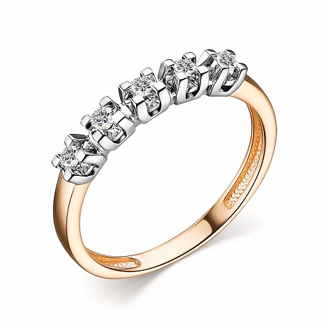 Кольцо выполнено с сочетанием красного и белого золота 585 пробы, украшено дорожкой сверкающих бриллиантов. Изящная закрепка пропускает свет со всех сторон, тем самым полностью раскрывая игру и блеск камней. От бренда Алькор.
