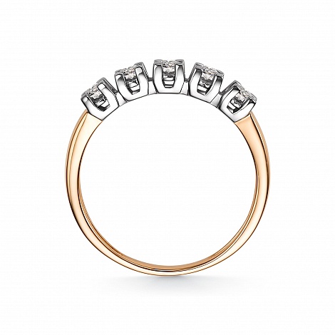 Кольцо выполнено с сочетанием красного и белого золота 585 пробы, украшено дорожкой сверкающих бриллиантов