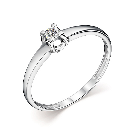Нежное кольцо для помолвки, выполнено из белого золота 585 пробы, украшено великолепным сияющим бриллиантом.